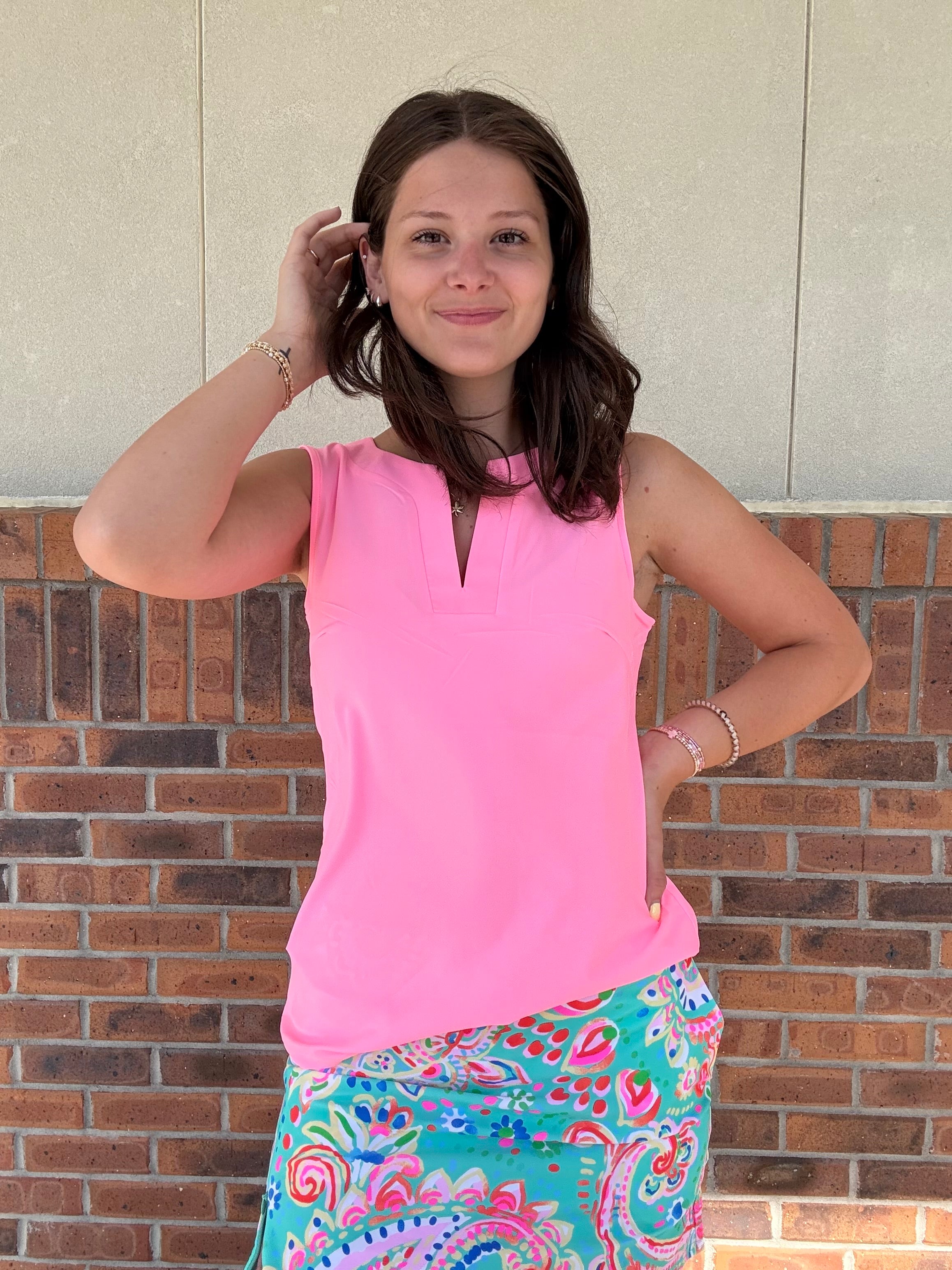 Effortless elegance meets modern style with this sleeveless split neck top. The distinctive neckline adds visual interest while the sleeveless cut keeps you cool and comfortable. Perfect for layering or wearing solo, this versatile piece transitions seamlessly from casual days to evening outings. Pair with your favorite bottoms for an instantly polished look.
