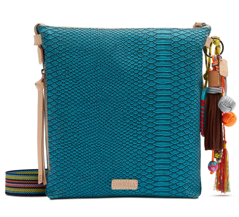 Our new, vertical crossbody has an extra front slip pocket and a side zip pocket to streamline your busy life in style. Zip it up and go!