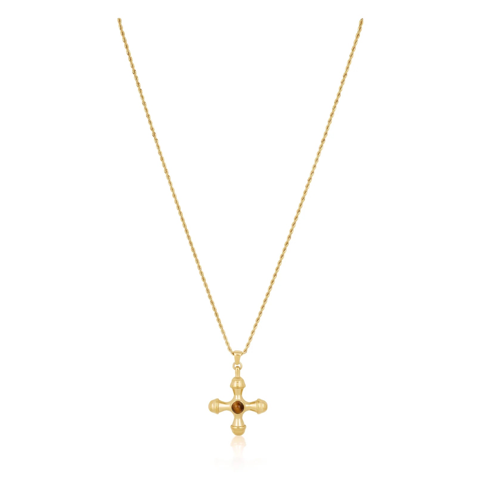 Unleash your inner strength with the Ophelia Cross Necklace. This stunning necklace features a Tiger Eye Stone cross, symbolizing courage and protection. Elevate your style and feel empowered with this unique and meaningful accessory.