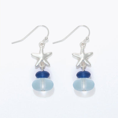 Starfish with Blue Seaglass Earrings