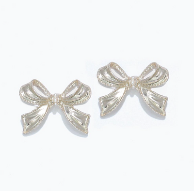 Silver Bow With Tiny Pearl Earrings