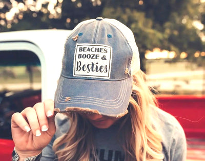 Beaches, Booze & Besties Distressed Trucker Cap