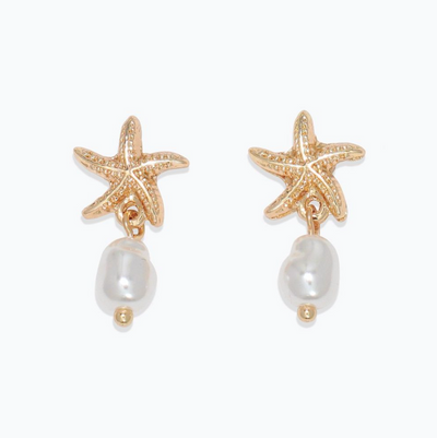 Gold Starfish with Pearl Drop Earrings