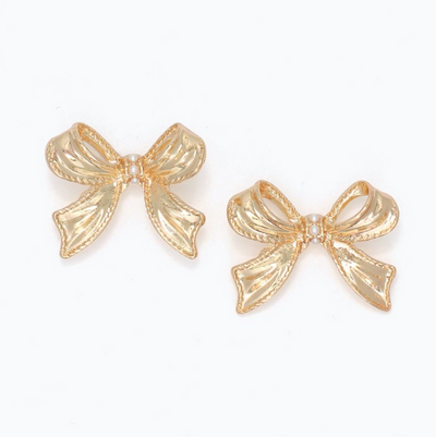 Gold Bow With Pearls Earrings