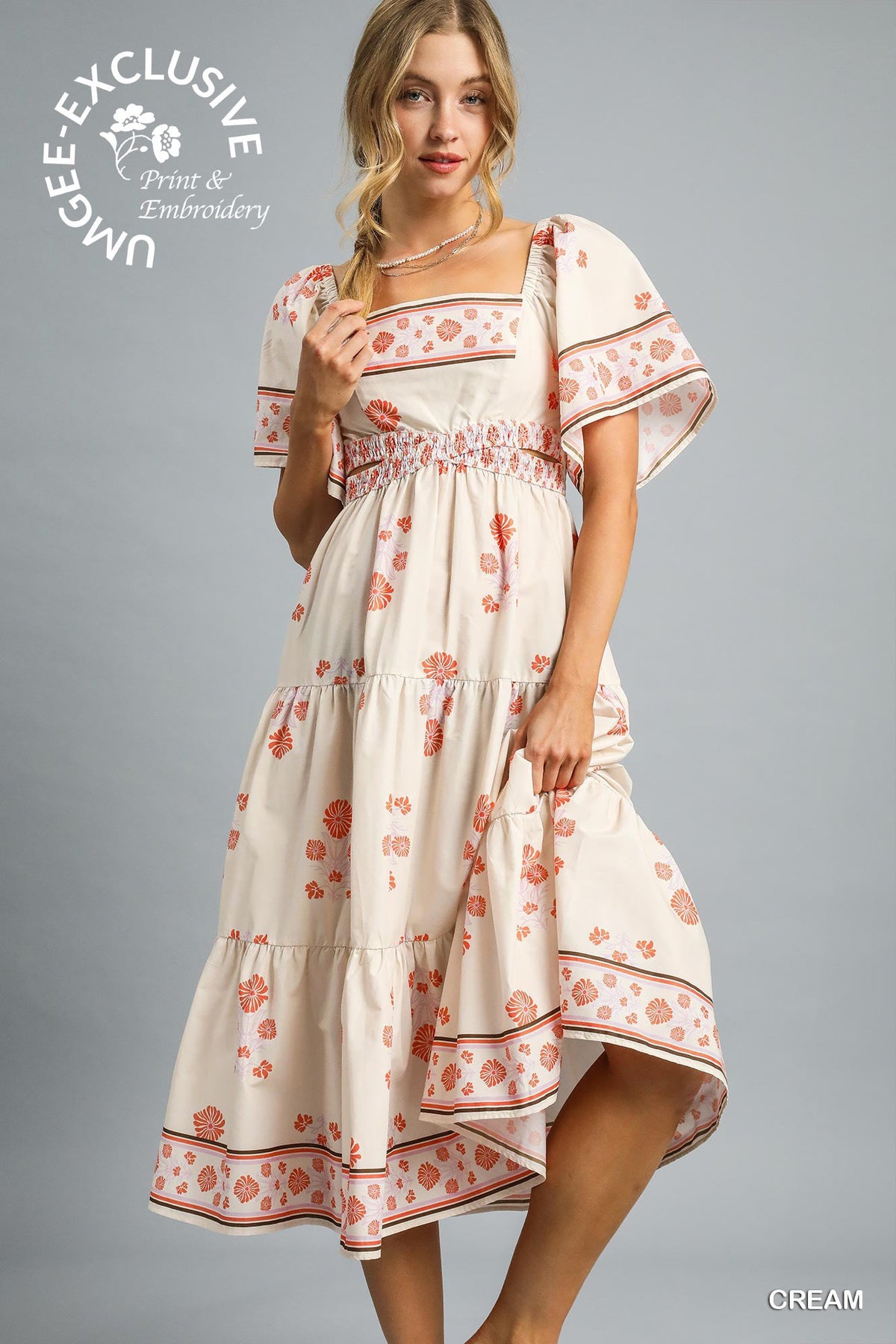 Umgee Floral Smocked Midi Dress