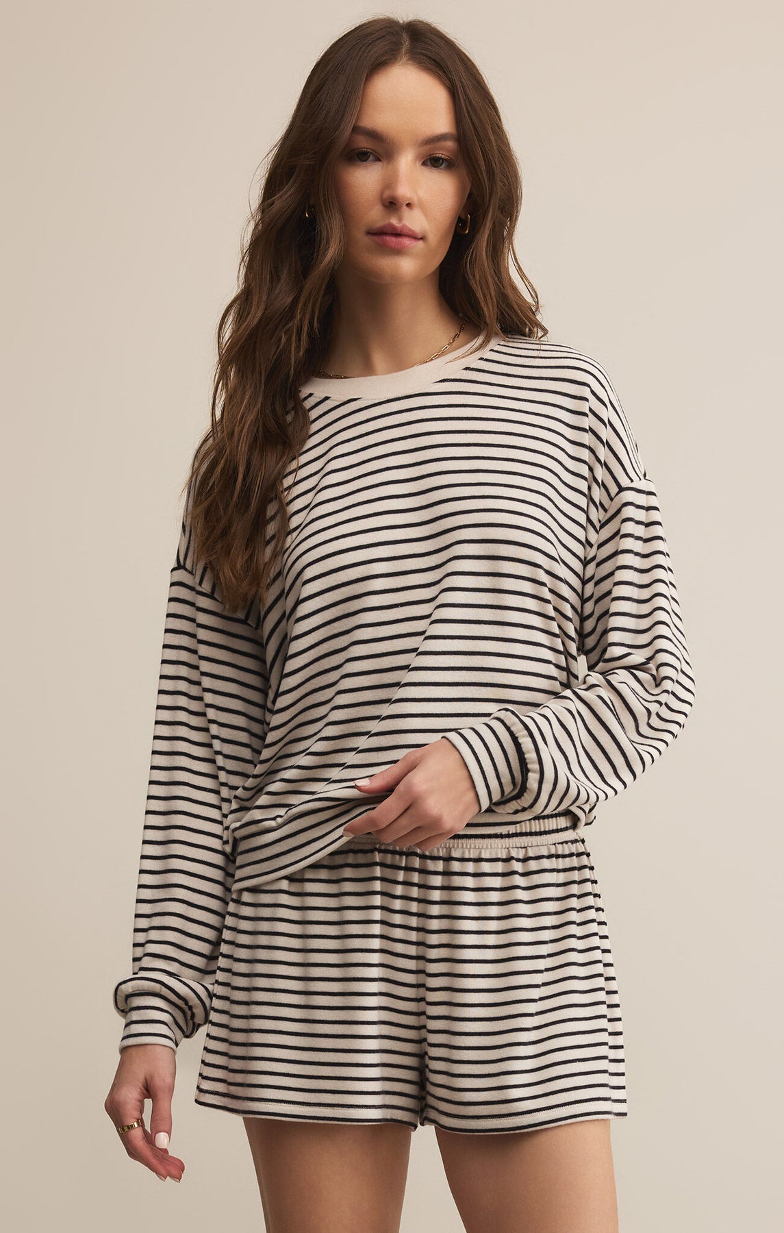- Brushed Stripe Sweater Knit: 62% Polyester, 34% Rayon, 4% Spandex