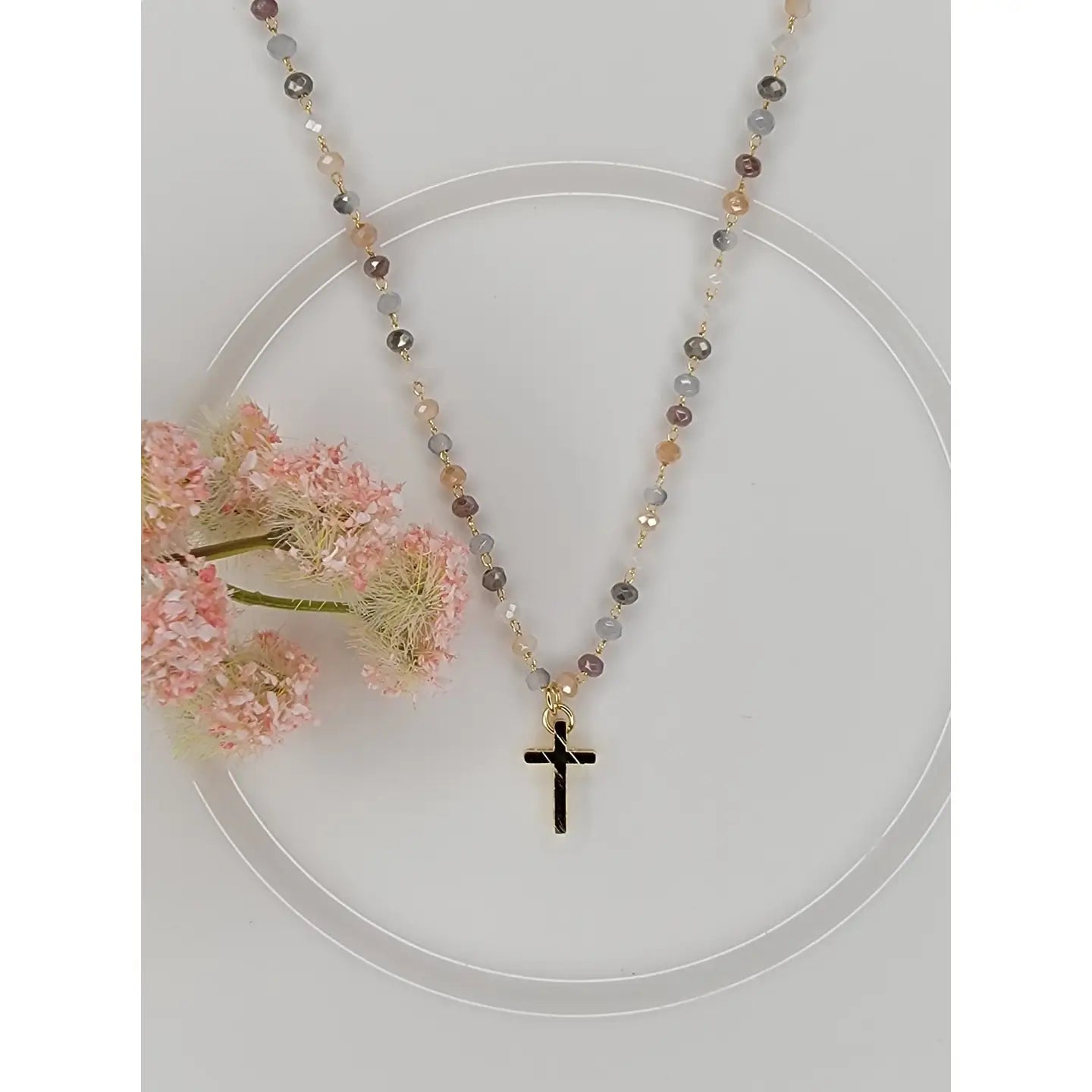 Gold Cross with Multi Color Crystal Beads Necklace