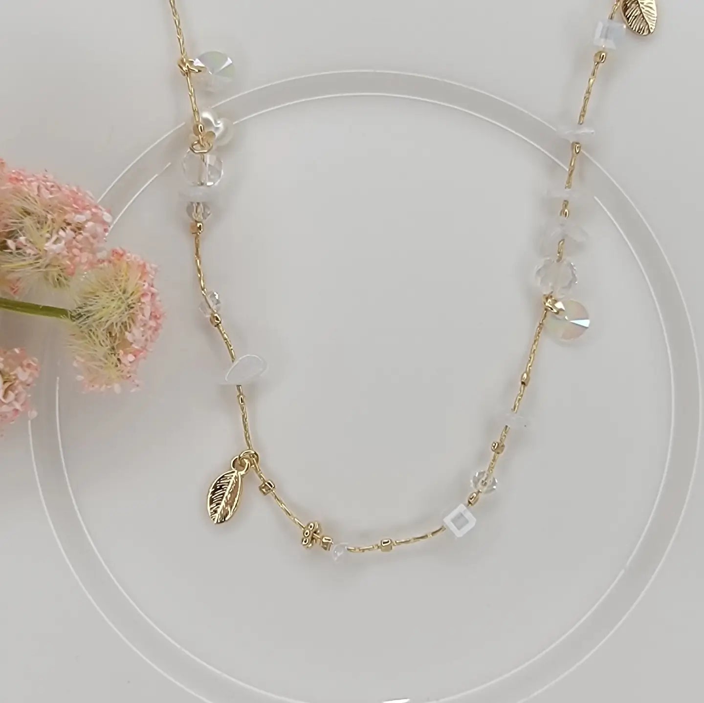 Elevate your everyday look with this enchanting handmade necklace, where delicate leaf crystal beads meet a charming leaf accent. Crafted from hypoallergenic materials and finished with lead and nickel-free components, it's perfect for sensitive skin. The tarnish-resistant metal ensures your piece stays radiant season after season. Choose between serene turquoise or crisp white beads to match your vibe. At 19 1/4" long, it's the ideal length for layering or wearing solo. A little nature-inspired magic for your jewelry collection.