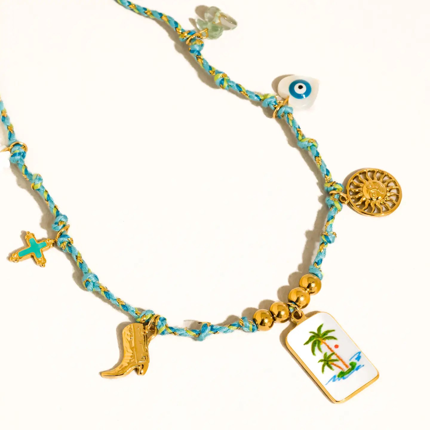 Elevate your style with the Peche Vintage Charm Rope Necklace, crafted with durable stainless steel and finished in rich 18K gold plating. This non-tarnish vintage-inspired piece offers lasting shine and strength, making it a timeless addition to your collection. Its intricate rope design provides subtle texture, perfect for layering or wearing solo to enhance any look with expert refinement.