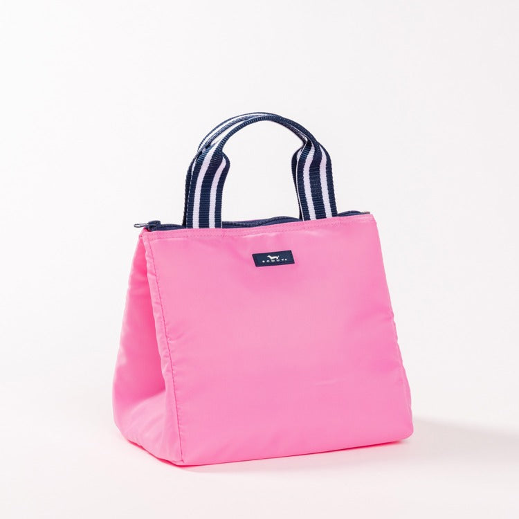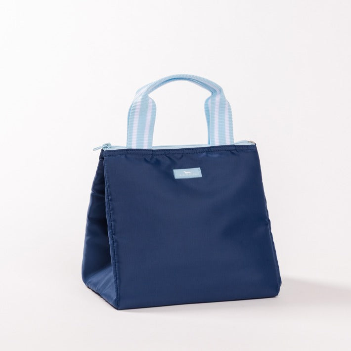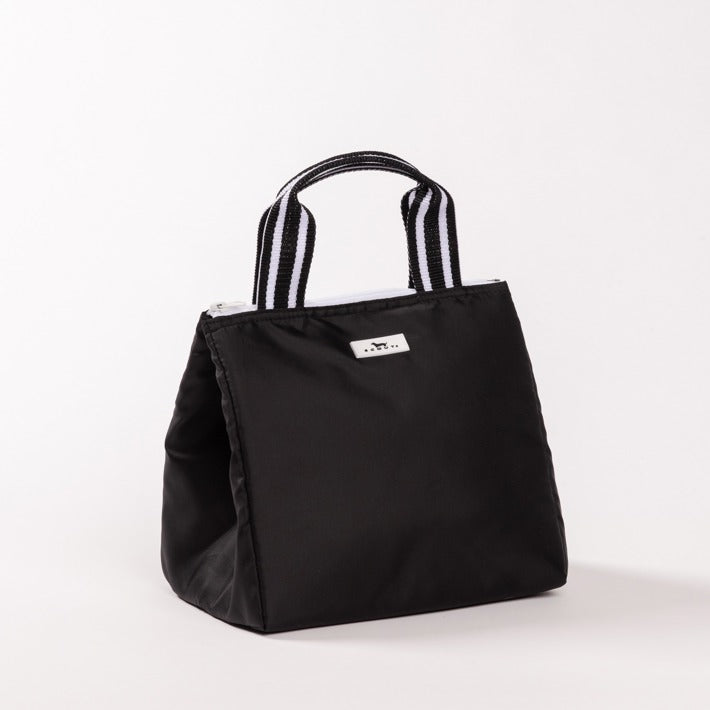 LUNCH FOR ONE AT THE PLAZA? Keep your food as fresh as your disposition with this handbag-inspired, zippered lunch box that opens wide to easily hold square food containers. The outside pocket is perfect for packing napkins, utensils, or little condiment packets.