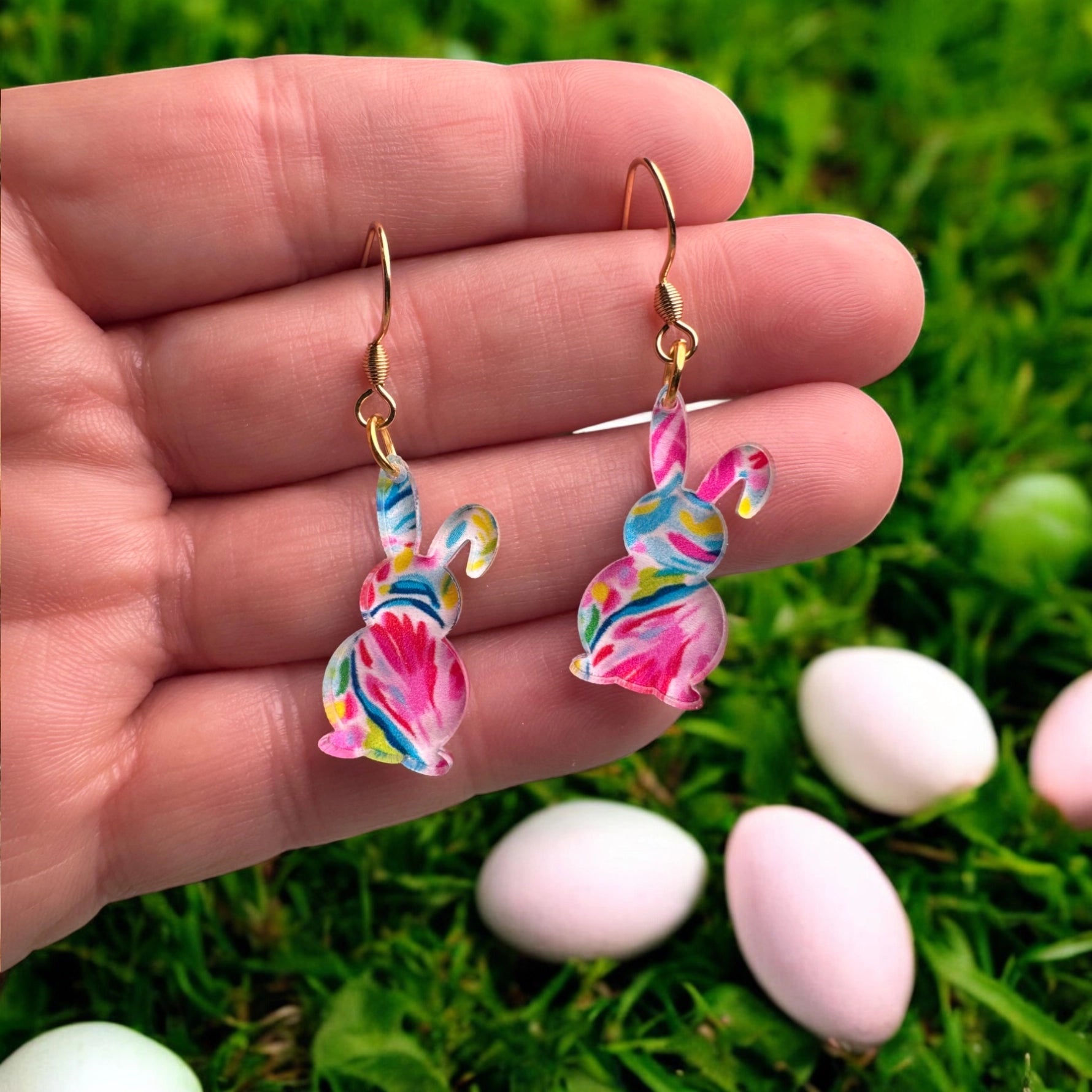 Make a statement this Easter with these stunning vibrant easter bunny earrings!ย