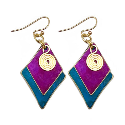 Brass Patina Earrings - Diamond Swivel Berry Layers