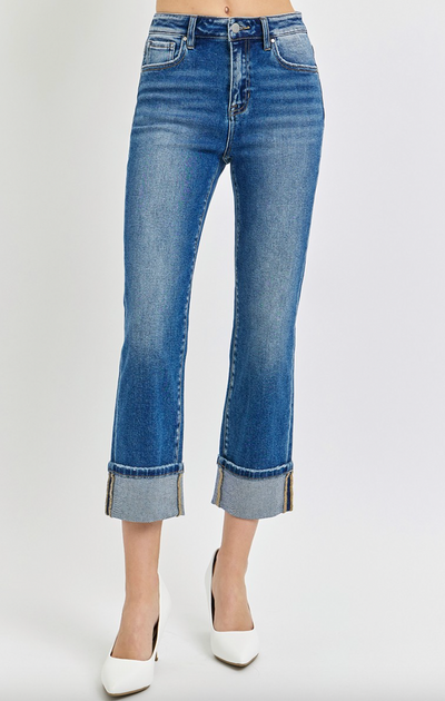Risen Mid Rise Fit Barrel Roll Up Jeans