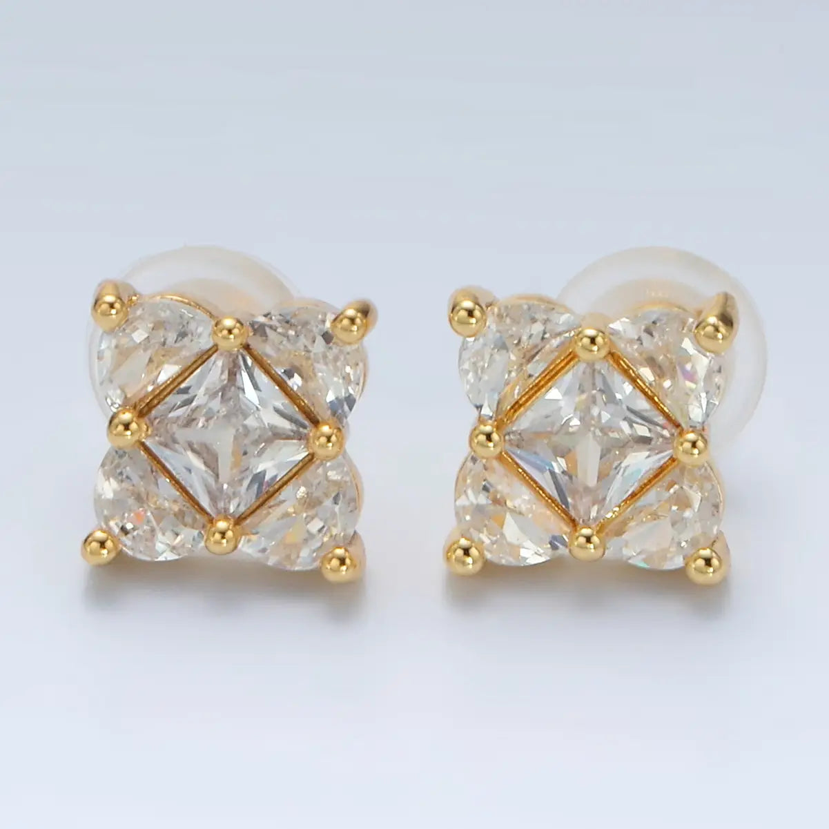24K Gold Filled Geometric Cz Square Stud Earring