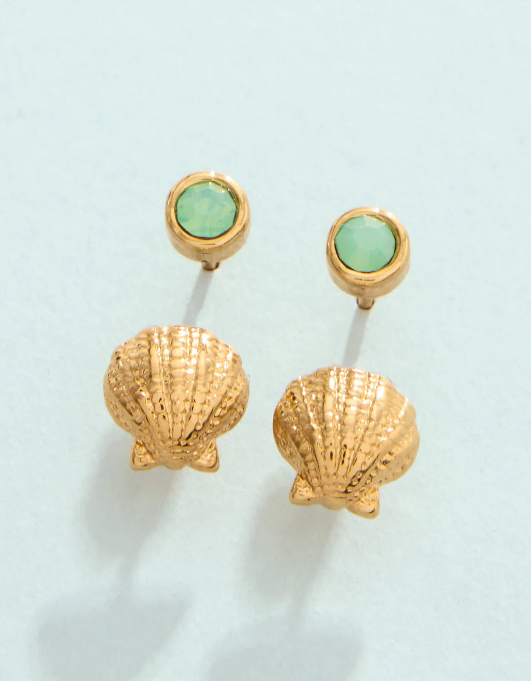 Jump into summer with our Little Shell Stud Earrings Set. Made of tarnish free, water resistant 14kt shiny gold plating over stainless steel, this coastal-inspired earring set features petite, textured shell motifs with coordinating round sea foam crystal studs. Designed to shine through everyday wear, exercise, showers, and summer at the beach.