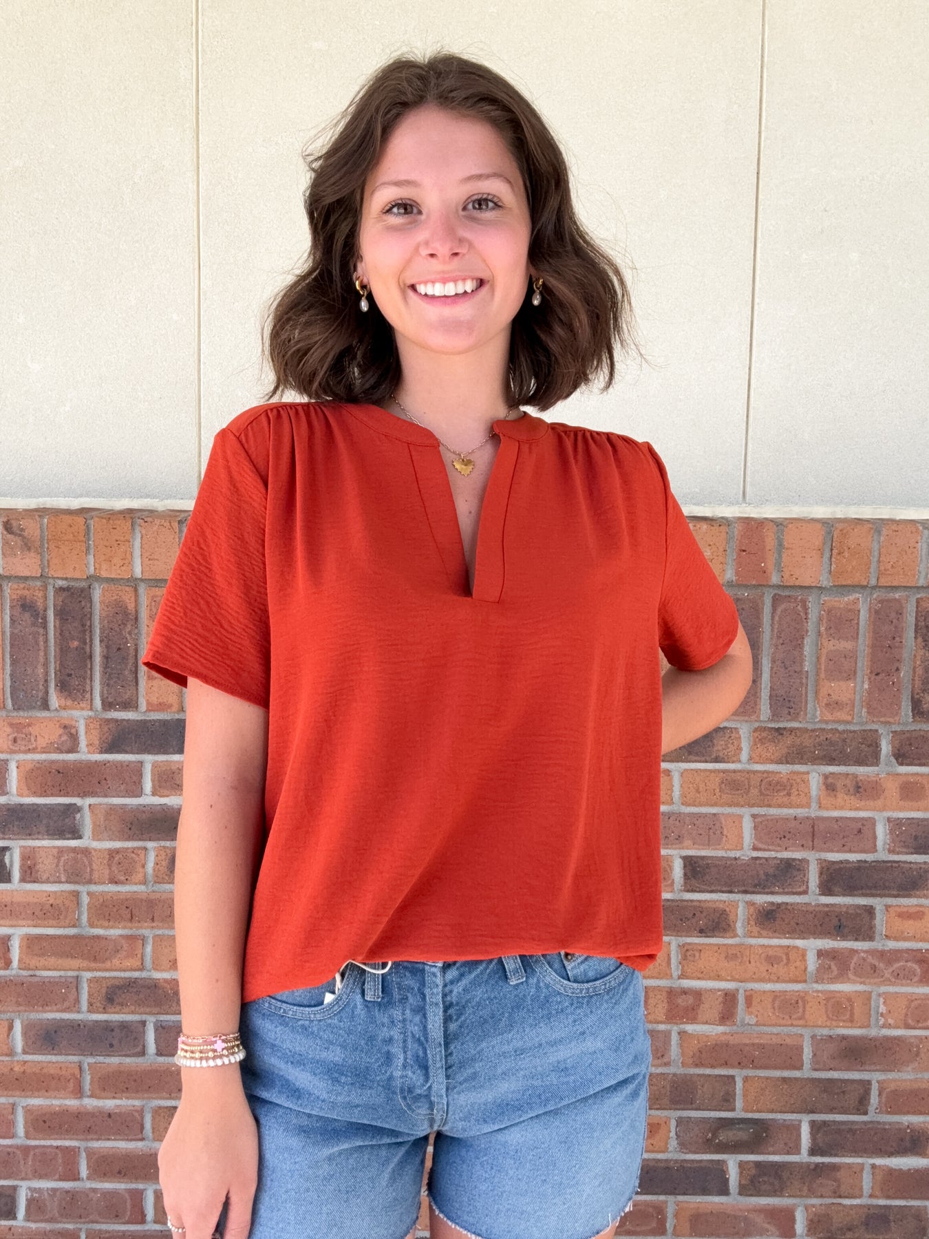 Entro’s Classic V-Neck Top is your new go-to for effortless style! This lightweight, woven pullover features a flattering split V-neck and short sleeves, perfect for keeping cool and comfy. Made from 100% polyester, it’s non-sheer and unlined, making it easy to layer or wear solo. Add a splash of playful charm to your wardrobe with this versatile staple!