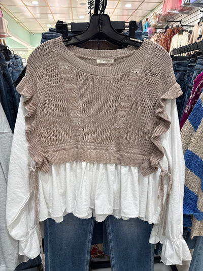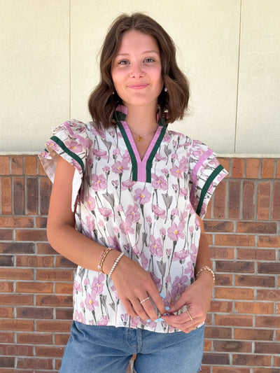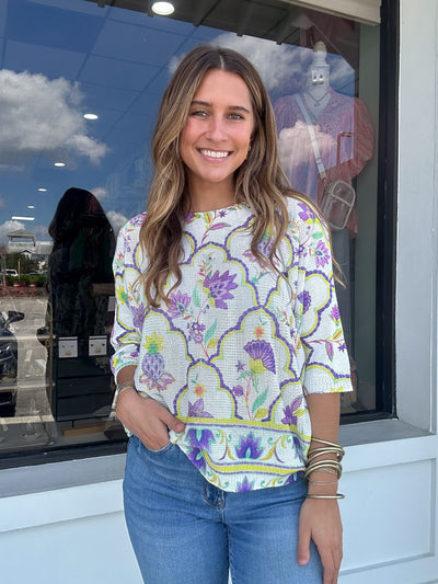 LuLu B Blue Geo V-Neck 3/4 Sleeve Top