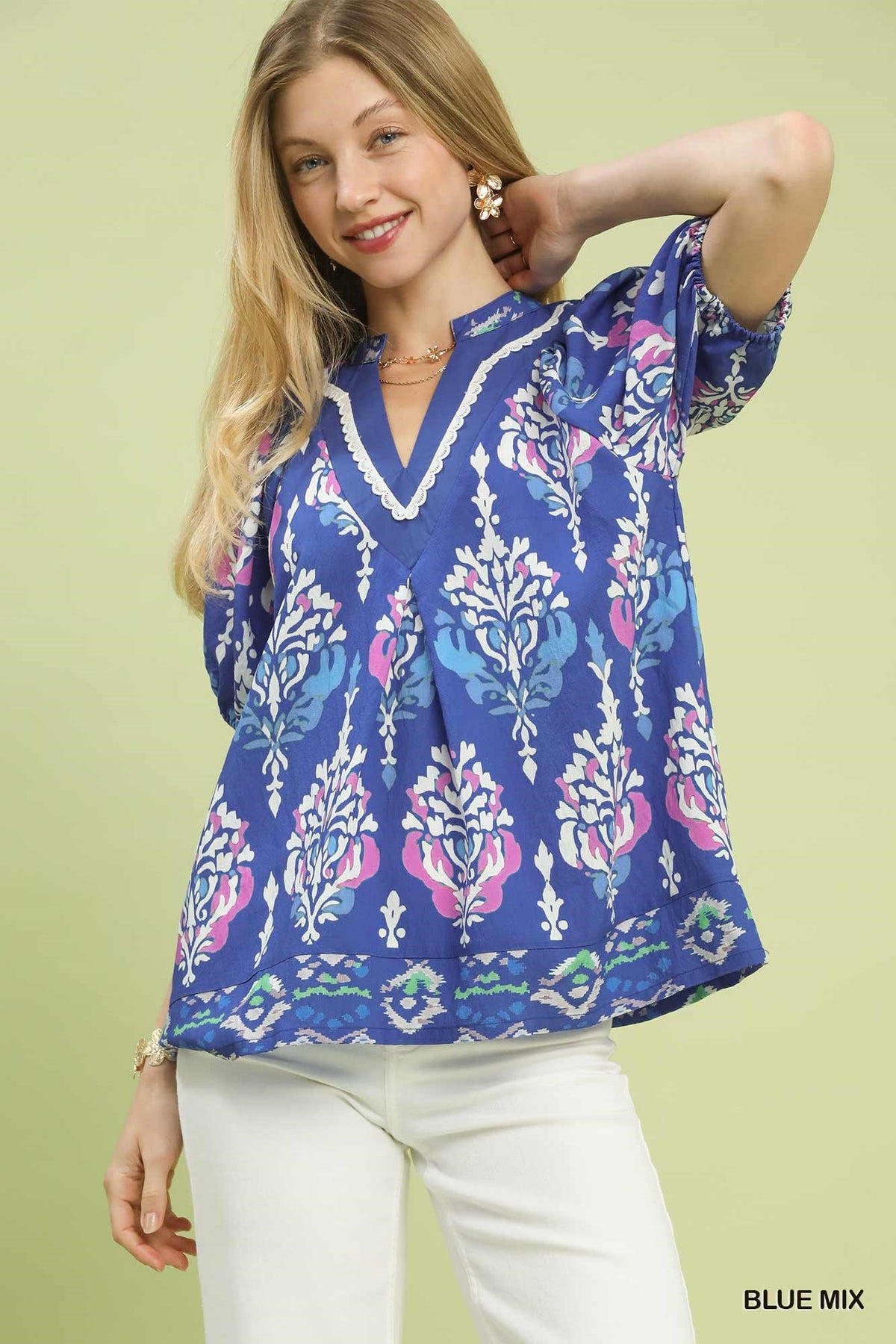 Umgee Boho Split Neck Top