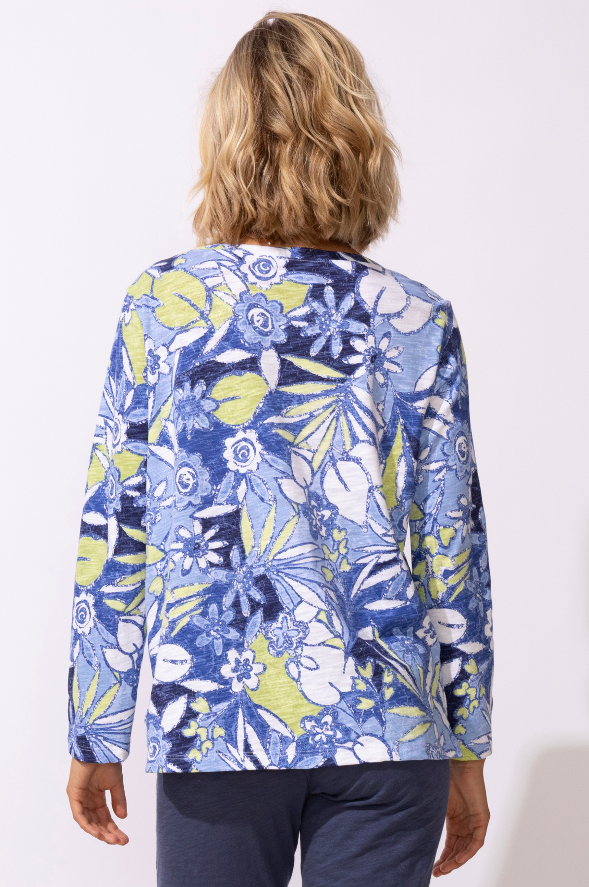 Slip into island vibes with this boxy tee that's all about relaxed comfort and tropical flair. Crafted from 100% cotton with a textured slub knit, it drapes effortlessly while the Fiji floral print brings a burst of color to your everyday rotation. Long sleeves keep things cool and casual—perfect for layering or wearing solo. Your new go-to for that "just got back from vacation" energy, minus the jet lag.