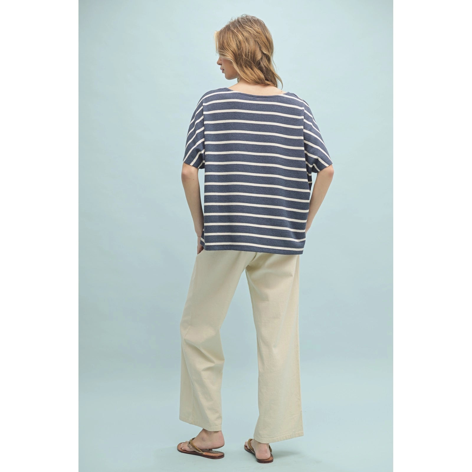 Add a splash of fun to your casual wardrobe with this playful Striped Boxy V-Neck Knit Top. Its short sleeves and loose fit make it a breezy choice for spring and summer days. Crafted from a comfy blend of polyester, cotton, and a touch of spandex, it’s perfect for everyday wear with a fresh, easygoing vibe.