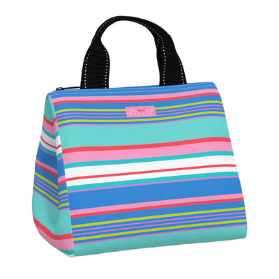 LUNCH FOR ONE AT THE PLAZA? Keep your food as fresh as your disposition with this handbag-inspired, zippered lunch box that opens wide to easily hold square food containers. The outside pocket is perfect for packing napkins, utensils, or little condiment packets.