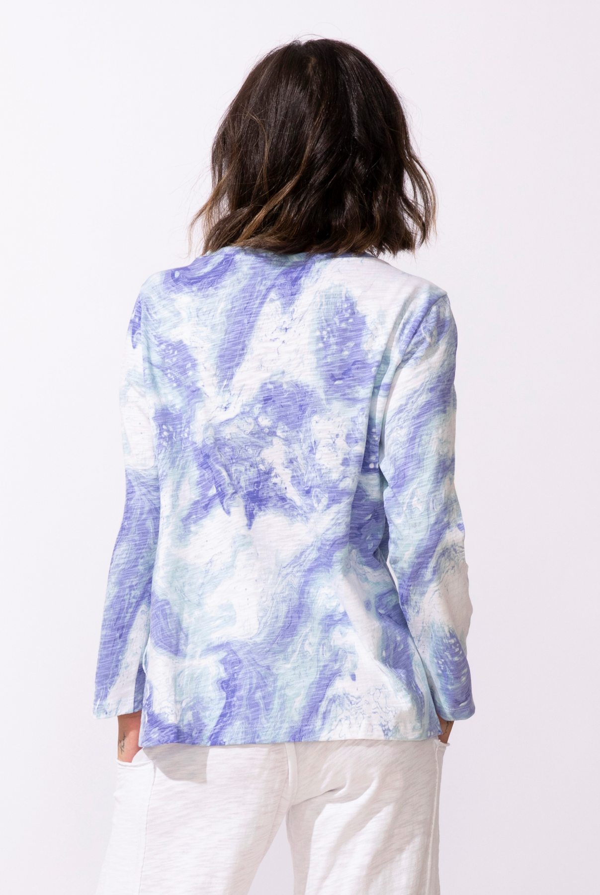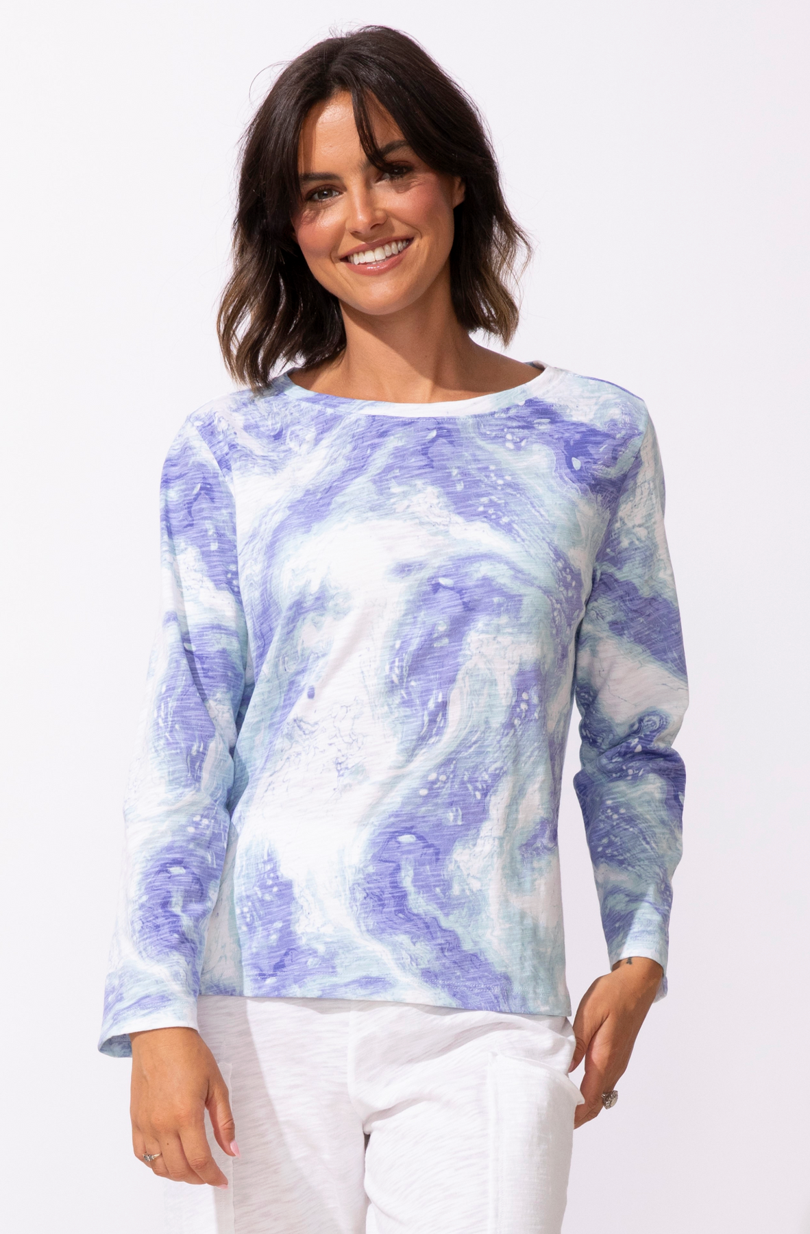 Dive into effortless style with this boxy tee that's as relaxed as a beach day. Crafted from 100% cotton with a textured slub knit, it features a mesmerizing ocean marble print that brings coastal vibes to your everyday wardrobe. The generous, laid-back fit and long sleeves make it perfect for layering or wearing solo. Whether you're channeling beachy-keen energy or just want a tee that feels as good as it looks, this is your new go-to piece.