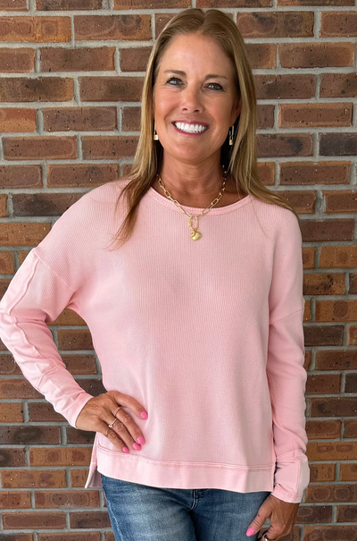 Escape by Habitat Pink Passion Waffle Knit Boxy Crew Neck