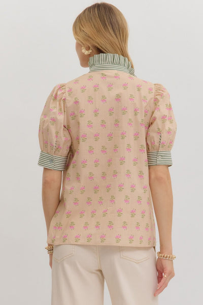 Floral Pattern Collared Blouse