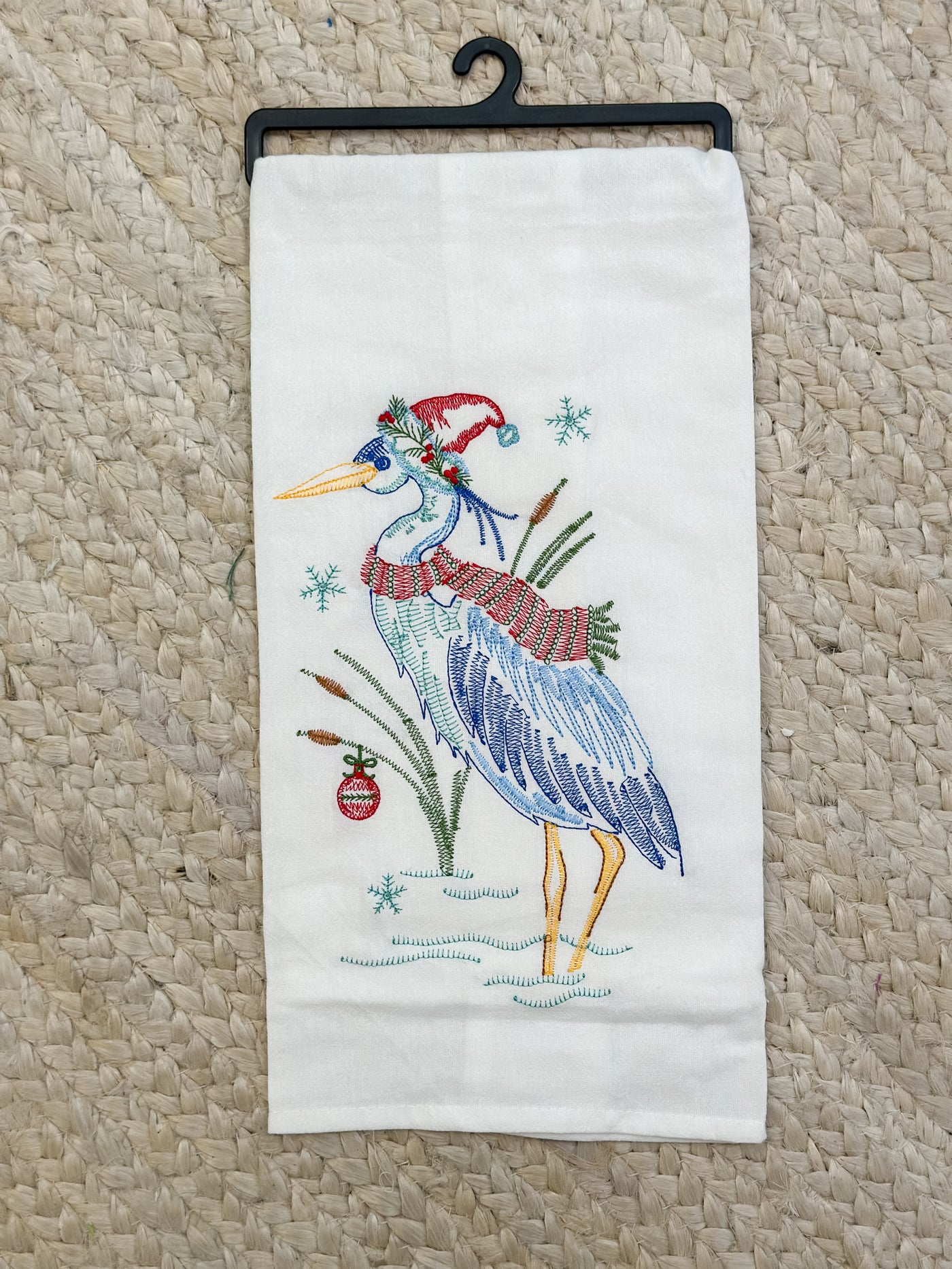 Make your kitchen festive with our Holiday Heron Flour Sack Kitchen Towel.