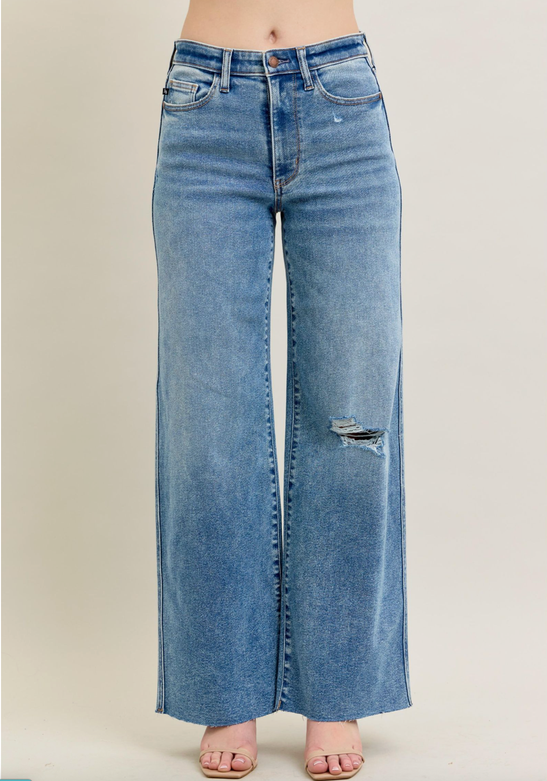 These Judy Blue Vicki jeans bring that effortlessly cool vintage vibe with a relaxed wide-leg silhouette that's all about comfort and style. The distressed details add character and edge, giving you that perfectly worn-in look without the wait. Whether you're dressing them up with a blazer or keeping it casual with a tee, these jeans are your go-to for laid-back confidence. Vintage never goes out of style—especially when it looks this good.