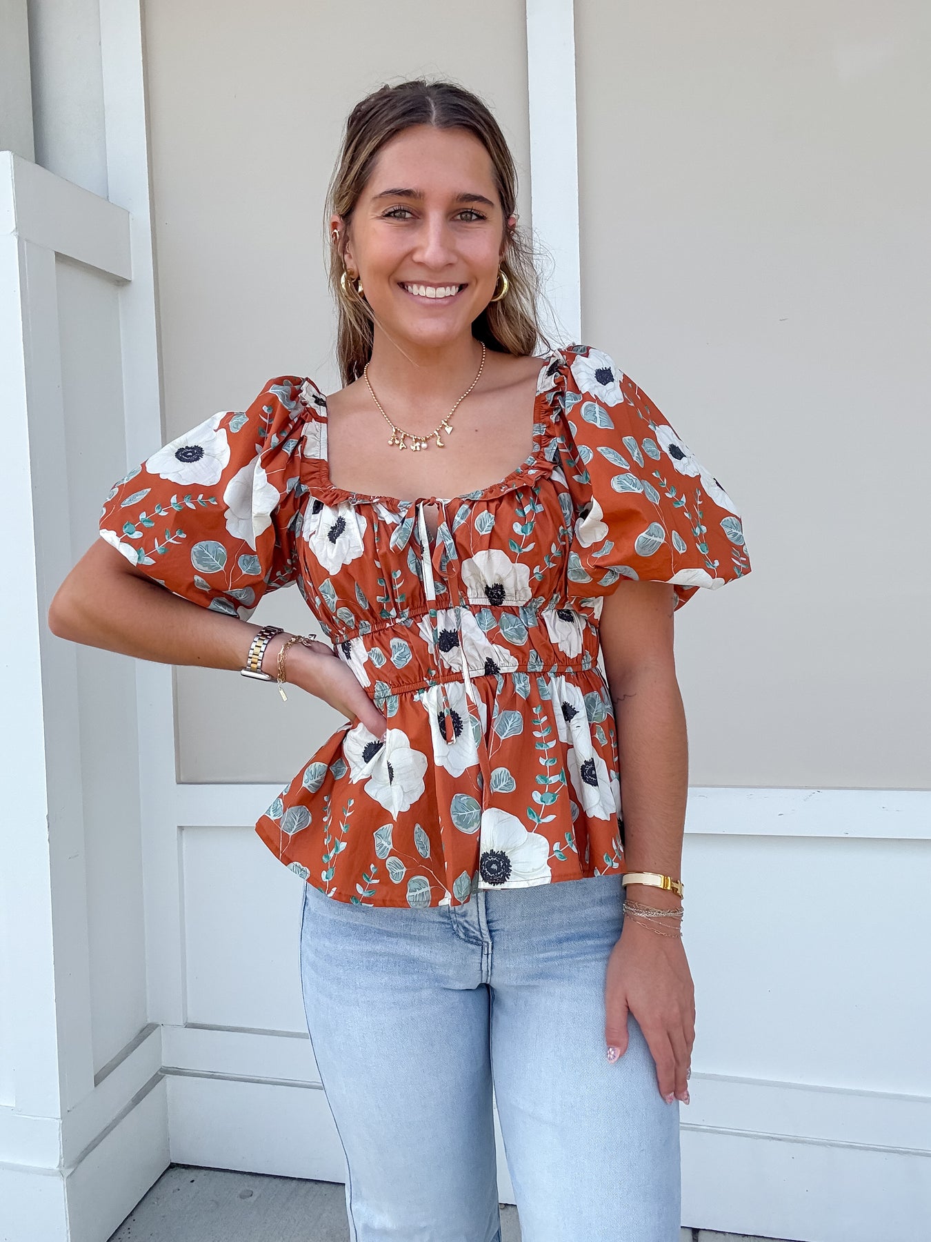 Embrace effortless elegance with the October Muse Top. Crafted from lightweight, breathable 100% cotton, this woven blouse features a flattering high empire waist and charming bubble sleeves. The square neckline with delicate ruffle accents and a tie-front closure adds a feminine touch, while the elasticated ruffle hem ensures a comfortable, flattering fit. Fully lined and non-sheer, it’s perfect for stylish layering or wearing on its own for a fresh, floral-inspired look.
