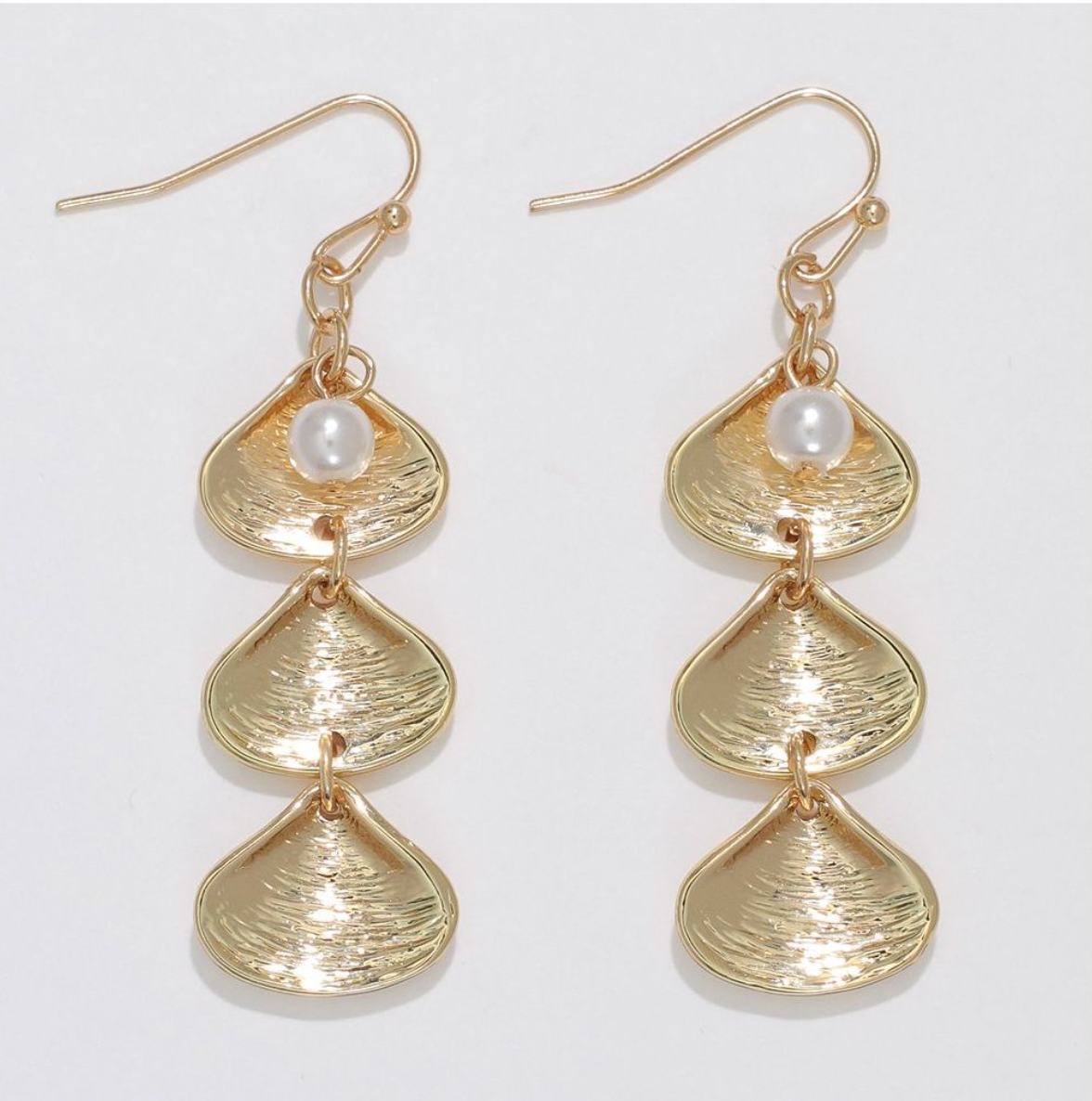 gold shell dangle with pearls