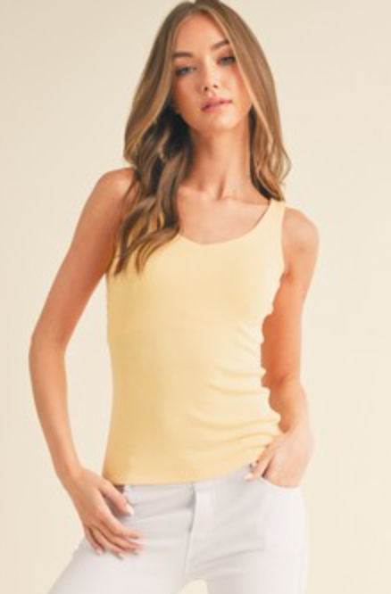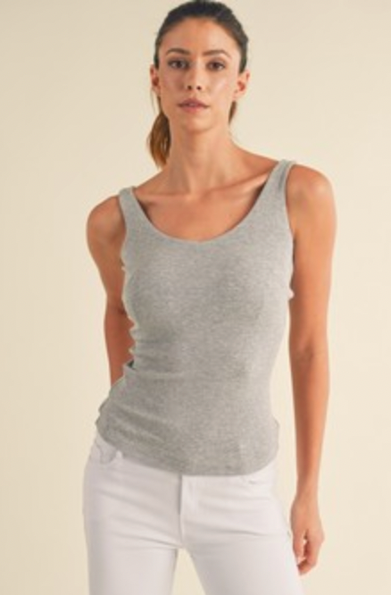 This tank top seamlessly blends comfort and style with its modern design, featuring a scoop neck, wide shoulder straps, and a chic scoop back. The built -in bra, complete with removable cups, ensures optimal support and versatility, while the ribbed material adds a touch of texture and sophistication. Perfect for layering or wearing on its own, this top is a must-have for any fashion-forward wardrobe. Let this fitted top emphasize your curves!