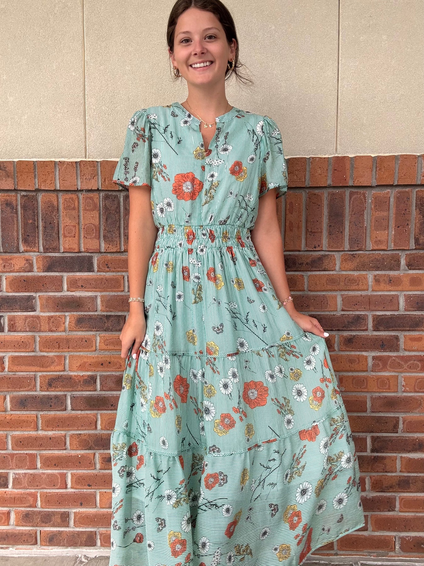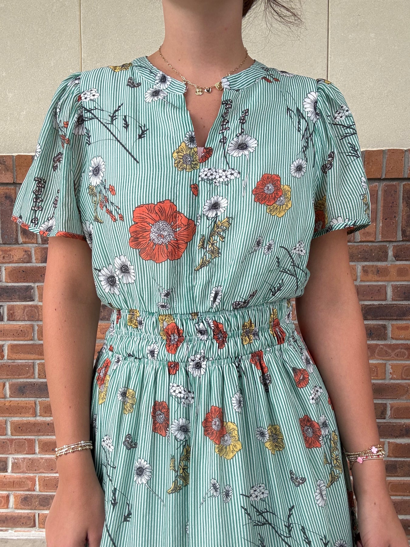 Step into sunshine with the Umgee Madison Striped Dress, featuring a playful mix of stripes and florals. Its smocked waist offers a flattering fit, while the midi length adds a breezy, effortless vibe perfect for any casual outing or garden party. Embrace comfort and style in one charming dress!