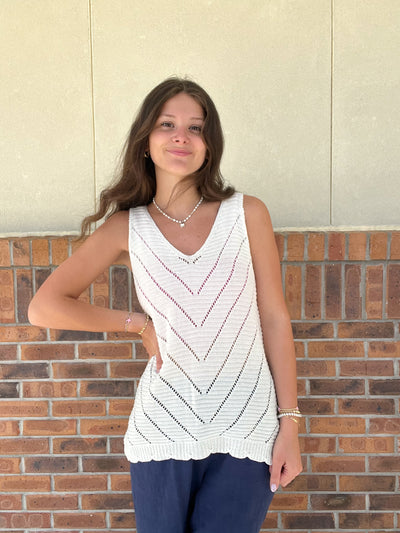 Embrace laid-back vibes with the Umgee Open Stitch Knit Tank Top. The V-Neck and ribbed stitching adds subtle detail to this sleeveless top, while the loose fit and lightweight knit make it perfect for warm weather. Choose from coral or off-white for a stylish pop of color.