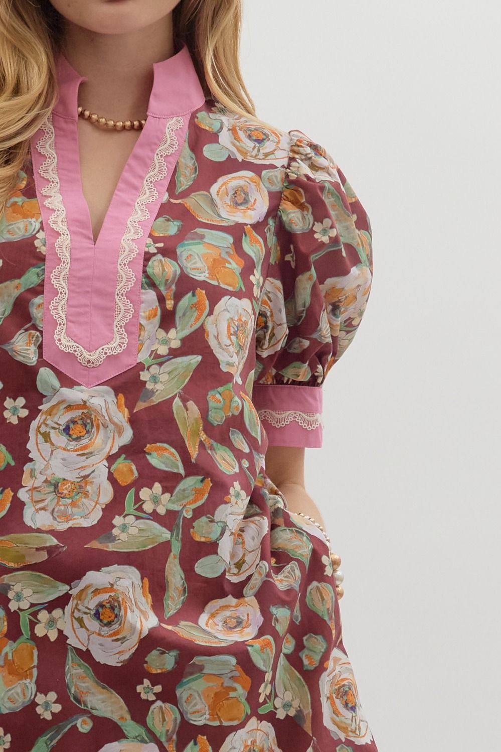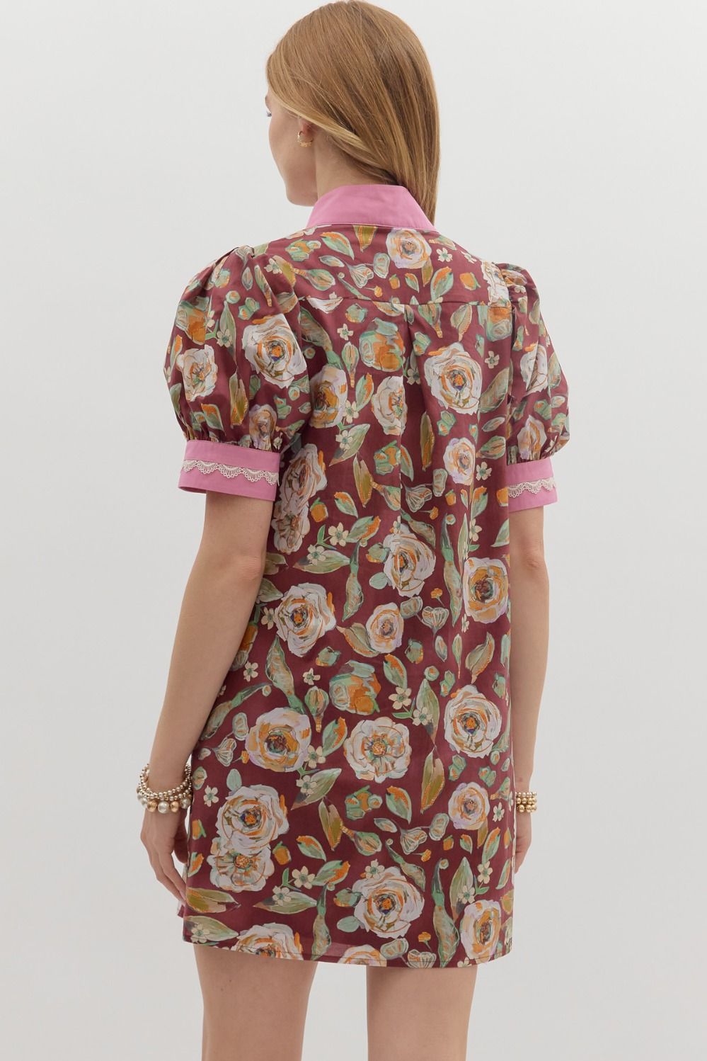 Brighten your day with the playful Watercolor Florals Dress. This short puff mini dress features a scallop inset with contrast accents on the V-neck band and sleeves, adding a sweet touch to its floral print. Practical side pockets and a lightweight, woven 100% cotton fabric make it as comfortable as it is charming. Fully lined and non-sheer, it’s perfect for sunny outings or casual gatherings where style meets ease.